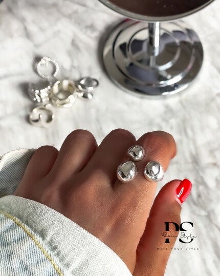 انگشتر سه توپ آبکاری نقره کد ۰۰۰۵۷