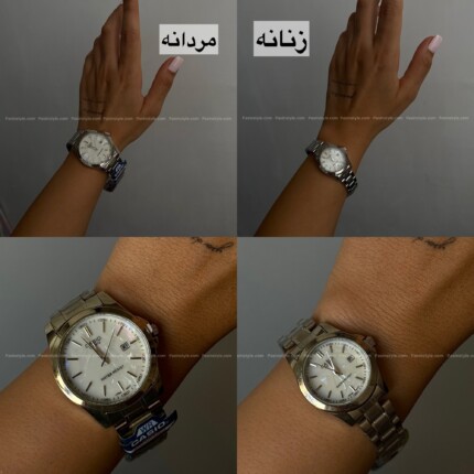 - بند ساعت و پشت ساعت از جنس استیل میباشد